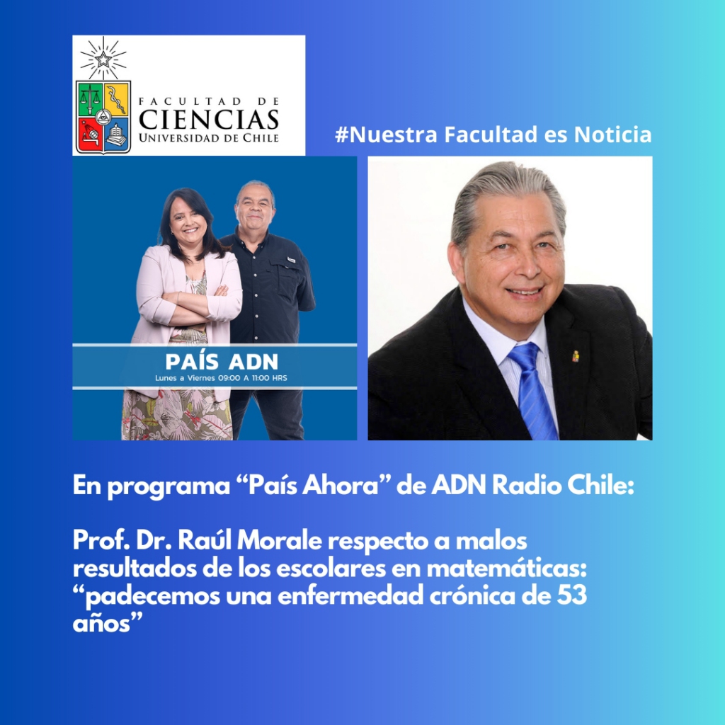 Los problemas que aquejan a la educación escolar, cuales serían los pasos a seguir para mejorar la enseñanza en los jóvenes y la brecha de género que existe entre los estudiantes en los conocimientos matemáticos son algunos de los temas que habló el Decano Prof. Dr. Raúl Morales en el programa “País Ahora” en ADN Radio. La conversación fue guiada por los periodistas Isabel Tolosa y Francisco Rojas, en relación con los preocupantes resultados que hubo en la prueba de matemáticas del Simce 2022.